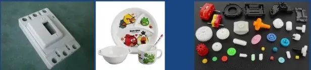 其中熱固性塑料為化學(xué)分子結(jié)構(gòu),一般是一次成型。如上左圖中開關(guān)面板和幼兒用的碗都是熱固性塑料加工而成的,它們具有耐高溫的特性,質(zhì)地堅(jiān)硬、難以熔化,加熱后也不再軟化,過度加熱直接分解。
